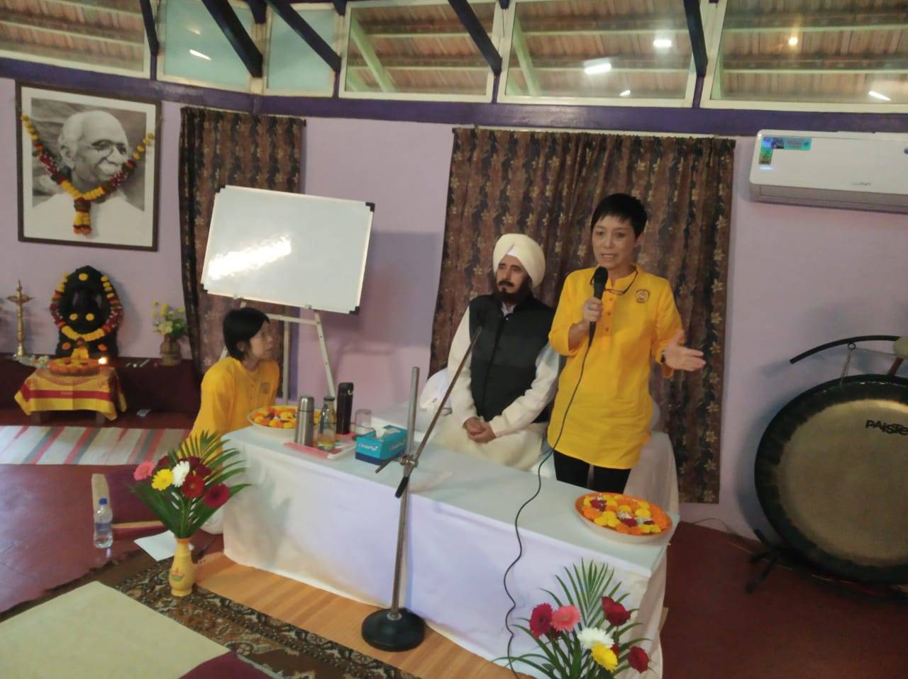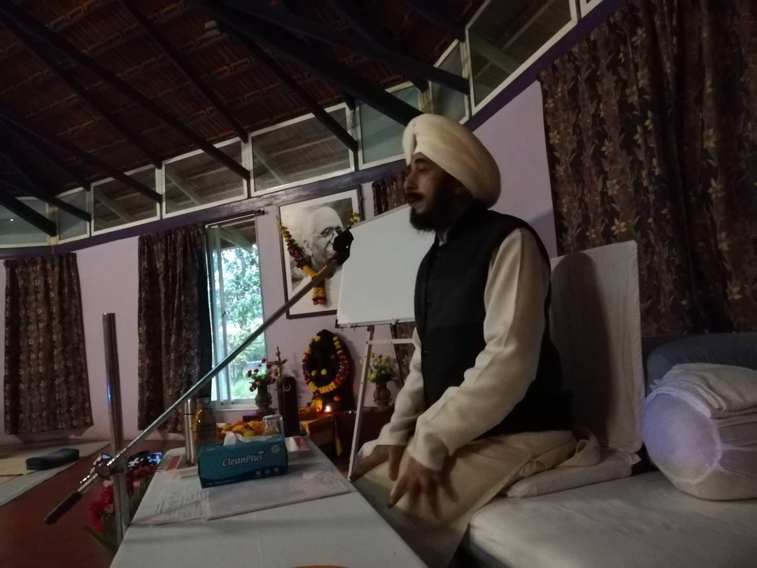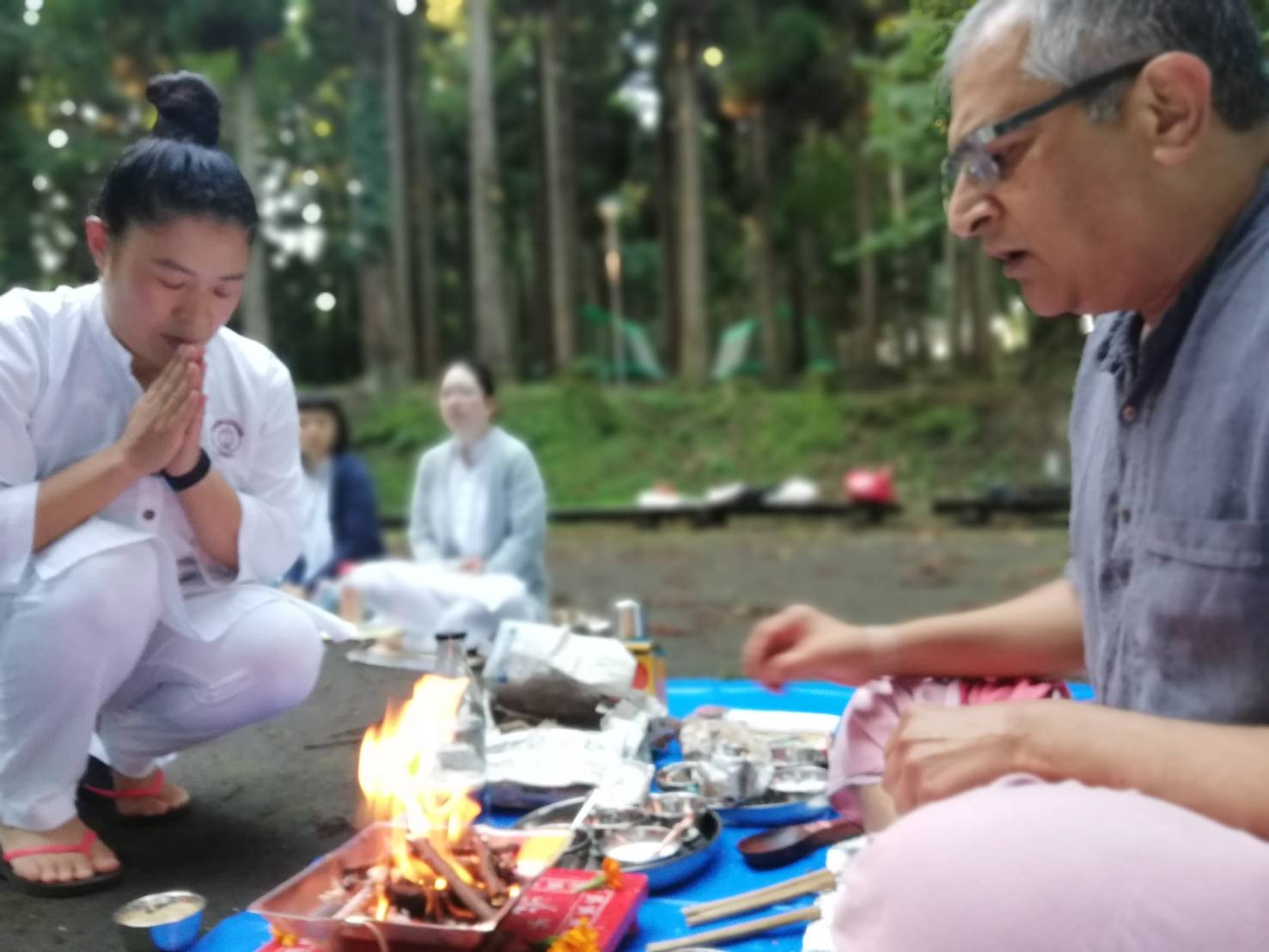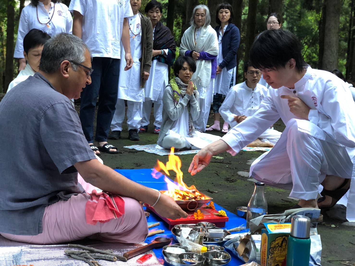 10月初旬、いよいよ最終章に入っていくShri Sudhir Tiwarijiとの総集編が無事終了いたしました。インド帰国の次の日にSudhirji来日、頭と身体がちぐはぐでしたが、生徒たちがそれぞれの活動の場で喜ぶ姿や真摯に学ぶ姿がエネルギーとなってこの日を迎えることができました。今回もまた生徒たちは深き学び、そして何よりはSudhir Tiwarijiの内側からあふれ出す優しさ、温もりのエネルギーを感じ、ある生徒は涙を流し、またある生徒は、その感動を言葉では表現できないと言ってました。師から出てくる言葉の一つ一つには古来からの揺るぎなき知恵と教えがあり、そして体験による的確さがあり、またヨーガを行うとどうなるのかを師の「姿」から学びとってもらうことができました。Pujaを 始めて体験した生徒は、魂が喜ぶ感覚を得た、といい。そこにいる生き物、特に鳥たちが集まり、自然と一体化するその体験は、やはりこれも言葉の表現だけでは言い表せません。今回もまた、CCY卒業者が東京各地からフィードバック参加してくれたり、お手伝いをしてくれたり、毎年仲間との絆の輪が広がり、深まるのを感じることができました。そう、最終日には、みんながサプライズ時間をとってくれて、「Tameva mata」のマントラと手紙、お礼の言葉をもらいました。通訳の船坂氏、これが始まる3日前に最愛のお母さんを亡くされ、そのような中での魂の通訳業、その話を始まる前にすると、、、この時に始めて皆さんに話しました。涙止まらずの、本当に素晴らしき仲間との時間を頂きました。